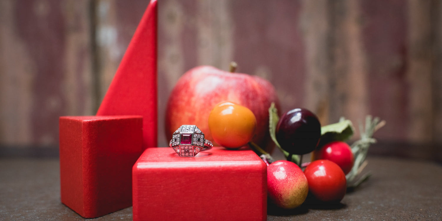 Baguette cut stones feature widely in Hattie's designs, and details such as channels of diamonds set on the sides of the rings allow beautiful views from all angles.